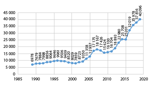 Figura 1. Promedio anual de personas privadas de la libertad, 1989-2019