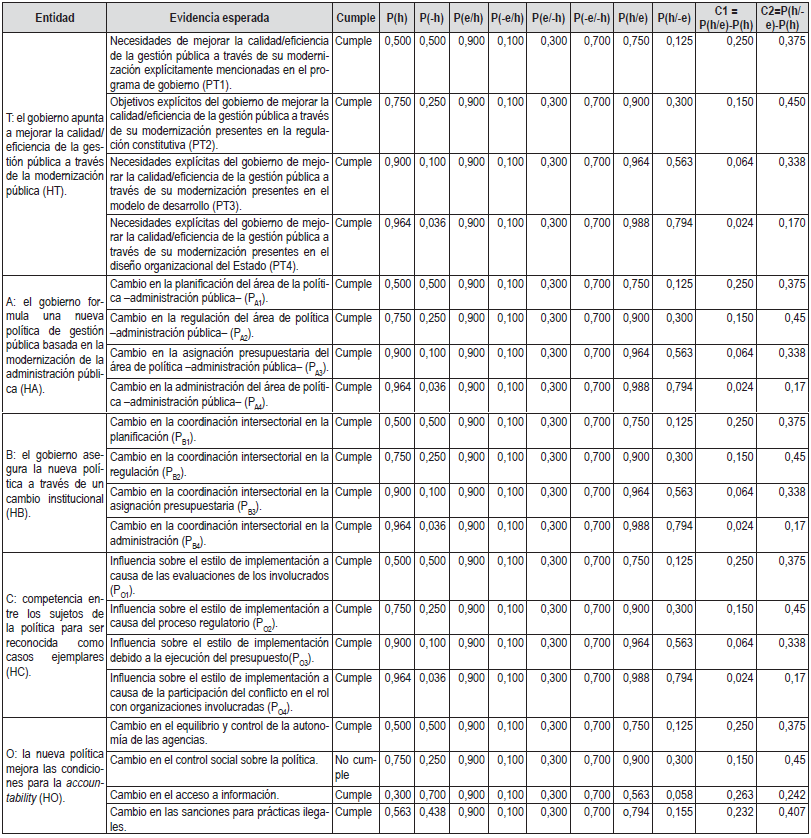 Implicaciones de la modernización de la administración pública para la rendición de cuentas: la confianza posterior del mecanismo causal se incrementa hasta un 98,8%, por lo que podemos decir que las entidades expuestas en la operacionalización de la teoría existieron en el caso ecuatoriano, por ende, la modernización de la administración pública en el caso ecuatoriano contribuyó a mejorar las condiciones para la rendición de cuentas.