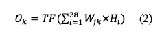De igual manera, el valor de la capa de salida Ok para la red neuronal se puede expresar de la siguiente manera: