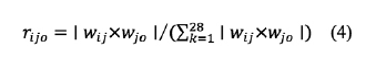 Esta función de transferencia permite convertir de una red neuronal lineal a una no lineal. El valor del nodo de entrada asignado por la red neuronal es determinado por la importancia de la información que carga la neurona, y el valor de la capa oculta representa la contribución a la capa de salida. Consecuentemente, la importancia del nodo de entrada puede ser calculada en función del nivel de afectación de algunos nodos. El método Garson (1991) se aplicó para calcular el valor de contribución de los nodos de entrada. El algoritmo de Garson usa el producto del peso de las conexiones para calcular el grado de contribución de los nodos ocultos j a los nodos de salida o. La contribución de cada nodo de entrada k contra cada nodo oculto j se puede expresar así: