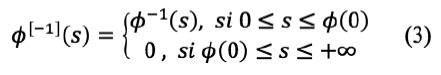 donde: ϕ se conoce como el “generador” de la cópula C y ϕ[-1] es la pseudoinversa de ϕ definida como: