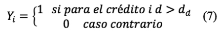 Donde, d = días de mora del crédito i; dd = número de días de mora máximo que puede tener un crédito para no ser considerado como incumplido. Luego, considerando que la pérdida esperada del portafolio se encuentra condicionada a la distribución multivariada del incumplimiento, se ajustó la tasa de incumplimiento con información histórica (Díaz y Ramírez 2009):
