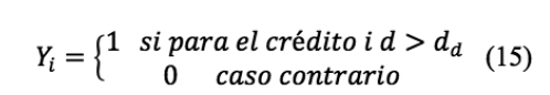 Donde: d = días de mora del crédito i; dd, = 15 días.