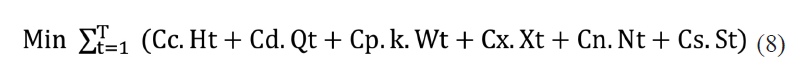 Estas variables permiten plantear la función objetivo, que se describe en la ecuación 8: