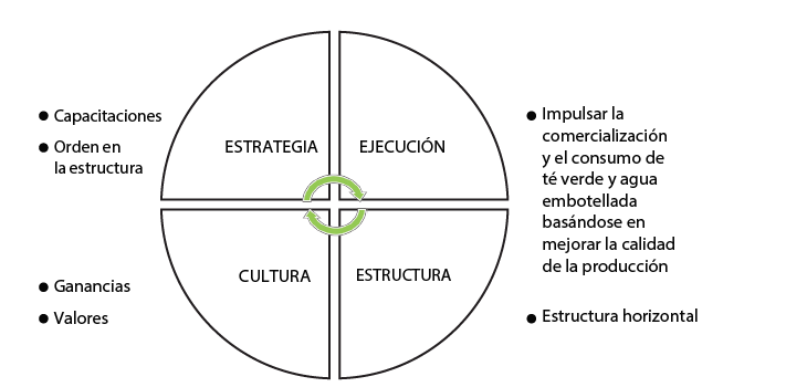Se toma en cuenta el concepto de Osterwalder, Pigneur y Tuccini (2005), que define que un modelo de negocio es una herramienta conceptual que contiene un conjunto de elementos y sus relaciones y que nos permite expresar la lógica de negocio de una empresa específica. La estructura del modelo de gestión de la empresa se enfoca en 4 aspectos fundamentales: estrategia, ejecución, estructura y cultura, que nos permiten ejecutar las estrategias definidas.
