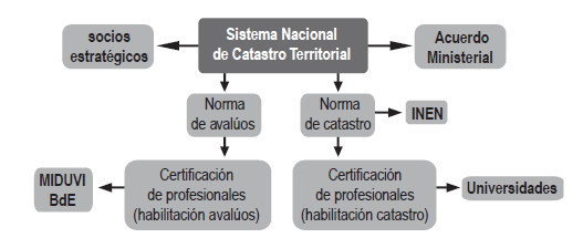 El SNC se apoya en dos pilares fundamentales: las Normas de Avalúos y de Catastro, las cuales pasarán a regular todas las actividades catastrales en el país (figura 4). Estas normas están siendo construidas por comités con-