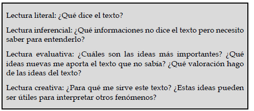 Sardà, A, Márquez, C., & Sanmartí, N. (2006). Cómo promover distintos niveles de lectura de los textos de ciencias. Revista Electrónica de Enseñanza de las Ciencias, 5(2), 290-303.