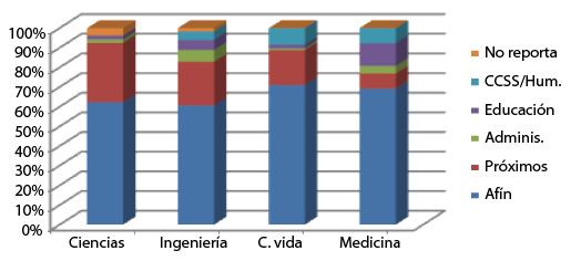 4 Si se hace un espectro de movilidad de acuerdo a las habilidades matemáticas y técnicas incorporadas (de ciencias básicas e ingenierías a ciencias de la vida, administración, ciencias sociales y humanidades), los saltos en la trayectoria son más altos en las ciencias básicas e ingenierías.