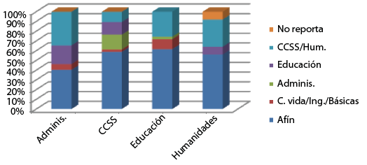Para evaluar qué tipo de incentivos para el doctoramiento ha creado el marco institucional, se analiza la trayectoria de títulos de los profesores y se estudia si existe coherencia en ella. Un recorrido no coherente entre tipos de estudios puede llevarnos a suponer que se accede a los estudios doctorales disponibles, mas no a los “ideales”, dado el campo en el que se desarrollan las actividades. Por ejemplo, trabajar en carreras técnicas y doctorarse en humanidades puede funcionar como un presupuesto fuerte de incentivo perverso, entendido como aquel que surge de forma inesperada y tiene resultados adversos o negativos, opuestos a lo esperado (Stephan, 2012).