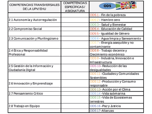 Fig. 2. ODS, metas, competencias transversales y competencias específicas.