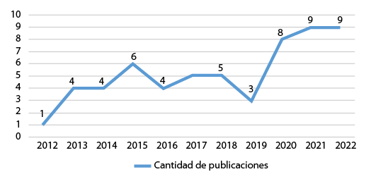 En la Figura 2 se aprecia de manera gráfica la cantidad de artículos obtenidos por año dentro del período 2012-2022.