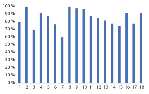 Desde una perspectiva general, se pone de manifiesto que la mayoría de las personas mentoradas mantienen una visión positiva en cuanto a la alianza en la relación, dado que la media de satisfacción se posiciona en un total de 85,1 %. Se prevé por ello el desarrollo positivo de las relaciones, debido a que los resultados obtenidos a partir de la escala SOATIF se recogieron en un momento intermedio del proceso de mentoría.