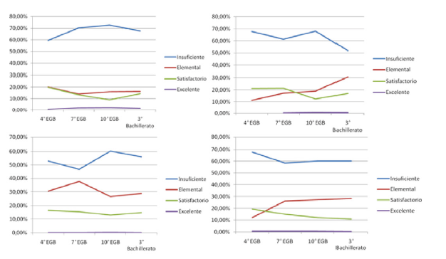 Se puede observar que en los primeros años (4º EGB), existen