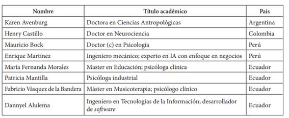 Se entrevistó a los siguientes expertos: