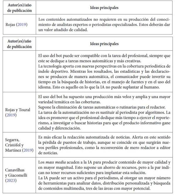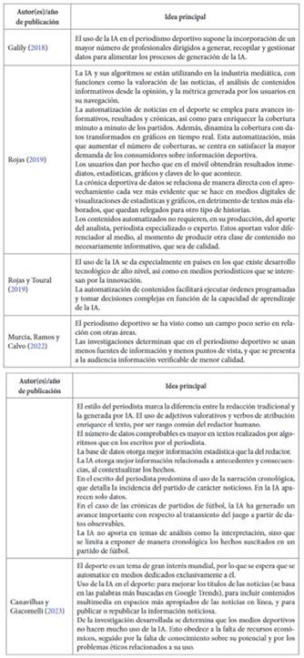 Tabla 3. Beneficios y riesgos de la IA en el periodismo deportivo, según los artículos recabados